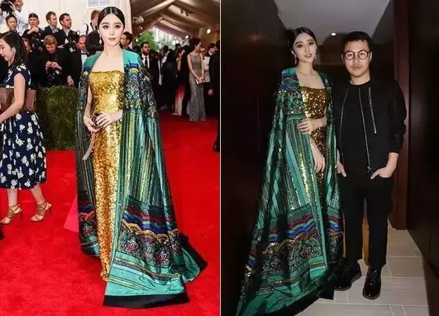 在今年Met Gala的红地毯上,范冰冰再次穿上卜柯文的设计。这次的礼服以中国闻名于世的「紫禁城」为主题,是一条金色珠片长裙, 再配衬一件绿色的刺绣大褛。无论是色彩还是工艺,都贯彻中国风的概念,令范爷气势逼人呢!