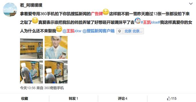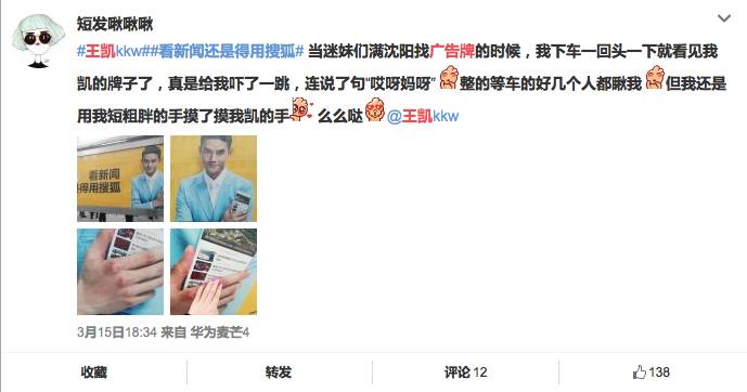 不仅如此,粉丝们还纷纷去和广告牌合影,微博秀起一片恩爱,无疑也让搜狐新闻成为了粉丝新宠。