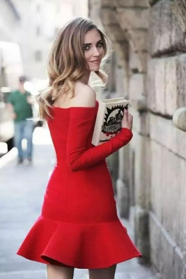 最美博主 Chiara ferragni红色露肩鱼尾裙