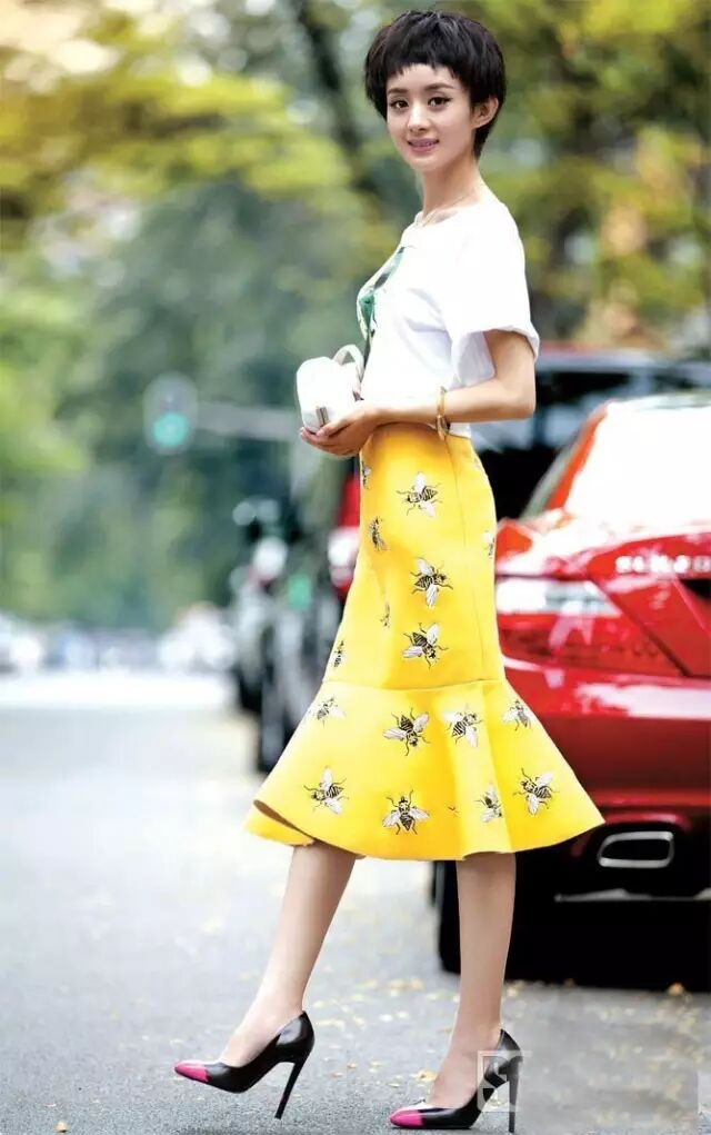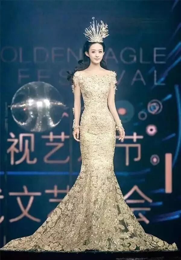 当上金鹰女神的赵丽颖一身鱼尾礼服裙