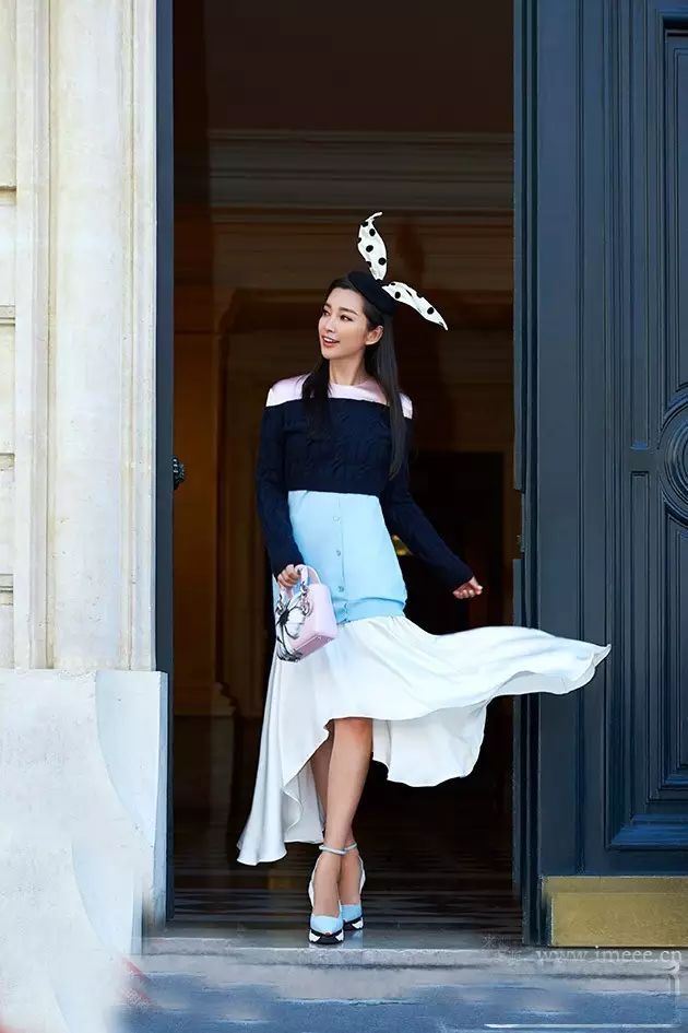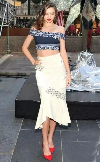 名媛olivia palermo波点衬衫搭配白色鱼尾裙