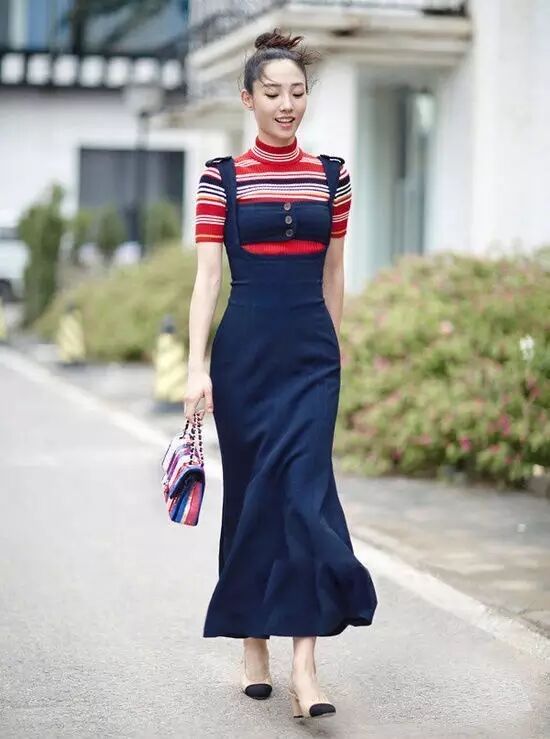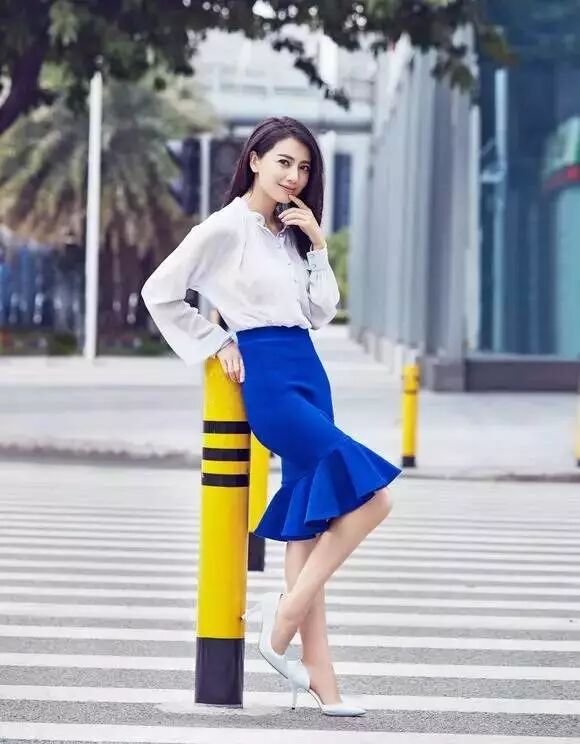清纯优雅的白衬衫搭配蓝色鱼尾裙