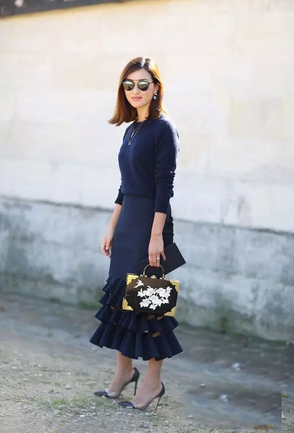 时尚博主Nicole WarneNicole黑色鱼尾套装