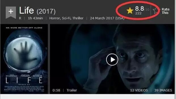 这部片,在烂番茄与IMDb两大权威网站开放评论后,烂番茄100%的新鲜度、均分超过8分均达到了科幻惊悚片中的最高水准。