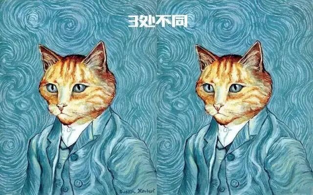 如果按照难度级别来分,初级估计是这样的:你能找出下面左右两张图,哪三处不同吗?↓