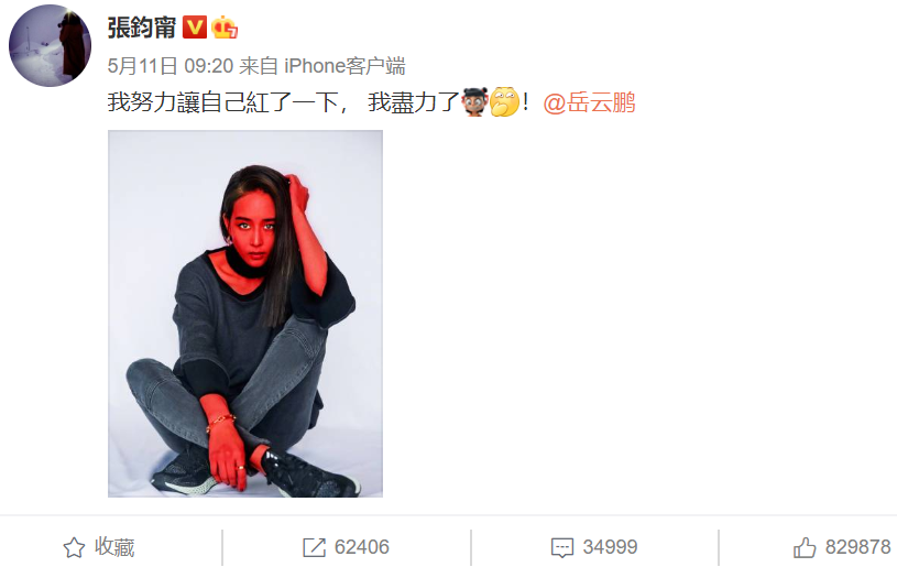 “我努力让自己红了一下,我尽力了。”↓