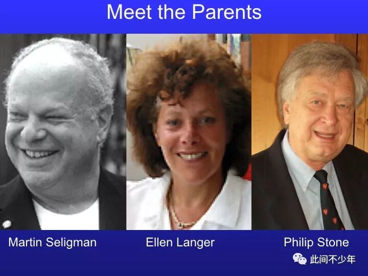 Martin Seligman被认为是积极心理学之父,与一群相关学者,于1998年确立了这一领域,和马斯洛一样,也是美国心理协会会长。他任职期间的首要任务,是实现两个目标。第一,让学院式心理学变得通俗,也就是说,连接起象牙塔与普罗大众,这是他任职期间的第一目标;第二,是引进一个积极的心理学,需要着眼于有用的东西,不仅仅是研究,抑郁,焦虑,精神分裂,神经症,还需要关注,爱,两性关系,自尊,动机,恢复以及幸福感。他提出了这些理念,从那时起便蓬勃发展起来。在Martin Seligman之前,都发生在1998年,下次我们会详谈,这都诞生于1998年,而早在1998年前,Ellen Langer教授就已研究了这些领域。将人本主义精神与学术科学严谨性结合,我们对她的讨论会比对其他人多。还有一位哈佛的教授,积极心理学的另一位父辈,Philip Stone,两年前的昨天去世了。两位都是我的物理学导师,带我进入了积极心理学领域的研究,1998年我第一次参加积极心理学峰会。Stone教授带我同去,我那时在攻读硕士学位。1999年,他首次在哈佛开设了本课程,在全球范围内也是首批,我是他的教研员。两年后,他又重新开设了课程,我仍旧担任教研员,后来我毕业了,他提议我接手他的课程。