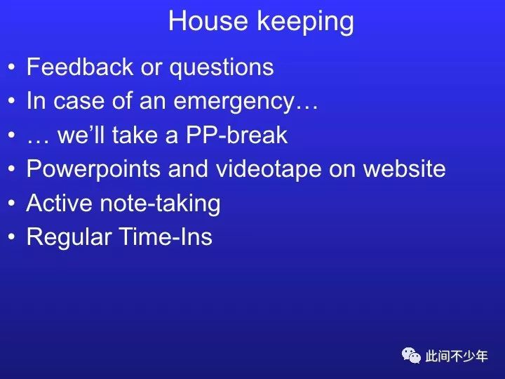 有几个问题课前就有人问我了。不幸的是这学期将是我最后一次,在哈佛开设积极心理学或其他课程,但愿两年内,明年可能性不大,但是两年内,学校会再次开设积极心理学课程。但我无法保证,关于反馈与提问,如果你有任何问题或不明白的地方,如果你同意或反对什么观点,请给我或助教写邮件,我们一定会回复的。如果某个问题问的人数较多,我们会公开回答,当然一定是匿名的。除非你特别注明可以提及你的名字,有时候讲座过程中,突然有紧急情况,有什么非问不可的问题,无法等待,如果那样的话,请直接举手。因为就跟你要去厕所一样,无法忍耐,无法等待,要去,就去,我们会为此进行积极心理休息,所以大可以打断我,我会回答任何问题。所有幻灯片以及课程视频都会放在网上,课后几天就能下载,幻灯片其实课前就能下载,这样你上课时就能用到,可惜视频不能提前提供,我们试了,但效果不好,所以会在课后一两天内放到网上。这样做的原因,首先,我当然更希望你们出席课程,能出现在课堂里,和大家一起,在课堂的气氛中学习,而不是仅仅对着电脑。我之所以把资料放在网上是为了,让你们可以重温或者学习错过的课程,这很正常。另一个原因,之所以提前提供幻灯片,我希望你们能充分理解材料,充分参与课堂讨论,而不是忙于记录我说的每一个字,记住每一个词,背诵每一句话,我不希望你们被动地记录,幻灯片上的内容或者我说的话,而是要主动记录,也就是要充分理解材料。比如,如果你们听到某个理论,觉得,“挺有趣的”,标上星号,写下来,或者觉得“也许我可以应用这点”,那就写下来。或者“跟我妈妈讲讲”,或者“跟我室友队友讲讲”,那就写下来,主动笔记与被动笔记有两方面不同。首先,正如我刚才说的,这门课是关于如何改变生活,我不会仅为了学术之美而教授此课。虽然这一领域的确有许多学术之美,所以发现可以实际运用的,就写下来。第二个原因是,你会记住更多,主动参与,集中注意,更好地理解材料,而不是被动做笔记。在这整个课程中,从下周开始,我们将进行我所说的,“练习时间”,而不是“休息时间”,其实类似“休息时间”,这段时间会我们停止课程,进行内省,也就是课堂上的安静时刻。我会停一两分钟,你们可以盯着我或者周围人发呆,或者思考一下之前讨论的内容,或者解答我提出的提示问题。之所以进行“练习时间”,这是今年新提出的,上学期并没有,因为上次课程结束后到现在的两年,我做了大量关于安静的研究。