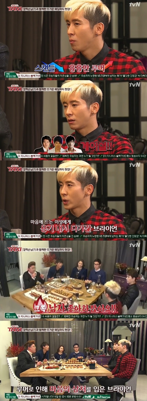2日播出的tvN《现场脱口秀Taxi》中,Fly To The Sky成员Brain作为嘉宾登场,并否认了有关他是Gay的传言。