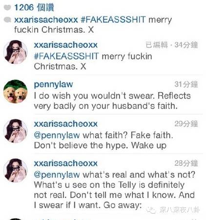 连环击:“I'm sorry but I'm not making baseless and unfounded comments/insinuations on other peoples pictures. U are……(我很抱歉,但我不是那个在别人照片留下一些没根据的评论、又爱乱影射的人,你才是……”)