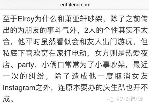 去年7月萧亚轩还在打算给Elroy办生日会,但是到了7月末,Elroy忽然就取消萧亚轩的instagram关注。。。