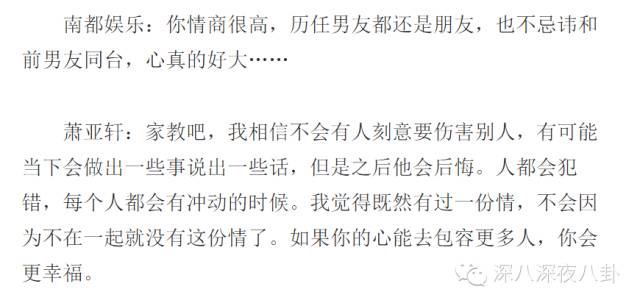而且更厉害的是,萧亚轩不但自己可以跟前任做朋友,连她的前任跟前前任都可以做朋友。。。