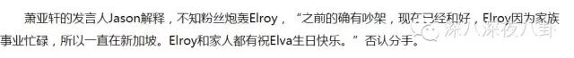 其实去年7,8月两个人就开始闹别扭啦,以至于本来萧亚轩要高调地给Elroy办生日会,到后来也没办。这个我们后面讲。。