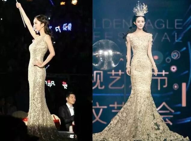 在金鹰节开幕现场,赵丽颖金鹰女神造型,再度与杨幂之前穿过的礼服极其相似,那么谁更适合这样的打扮?小编认为赵丽颖的皇冠已经足以赢了,鱼尾裙摆更显高贵大气的女王范!