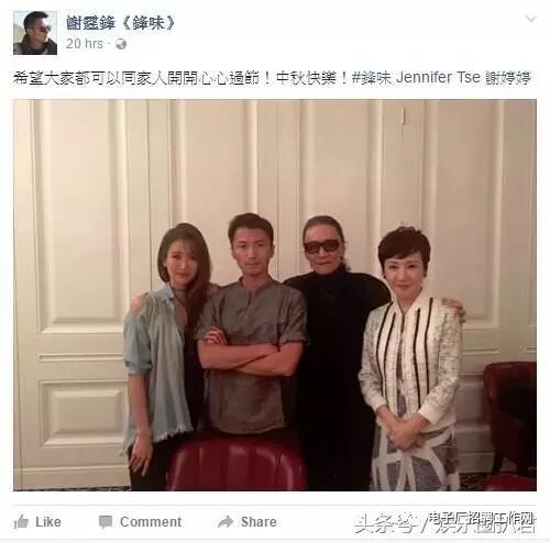 看照片中的谢贤搭着霆锋和狄波拉的肩膀,而站在一旁的妹妹谢婷婷则微笑看着镜头,画面真的非常温馨啊~