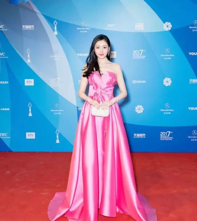 张天爱是个很有气质的人,不仅五官长得好,身材也很好,她身穿艳红色抹胸连衣裙,蝴蝶结的装饰增加甜美气息,白色的手提包彰显高贵。