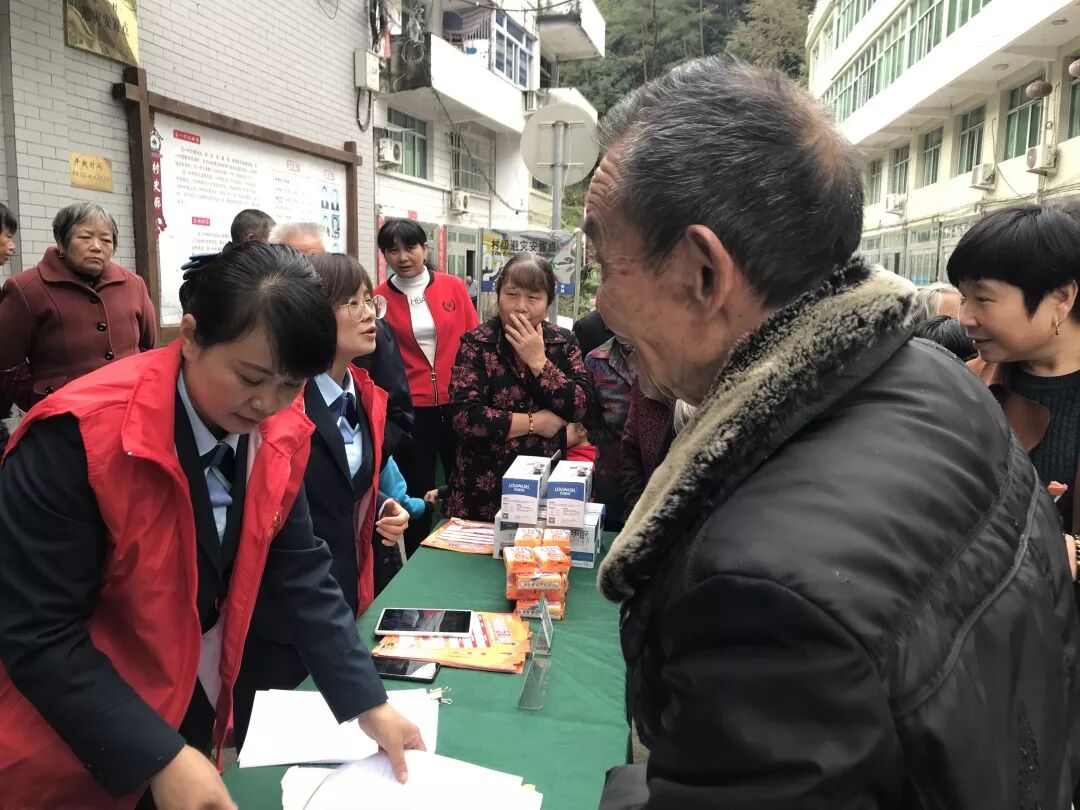 一大早,礼堂里面人头涌动,村民脸上都洋溢着幸福的笑容。礼堂门口,由玉壶镇牵头的邮储银行志愿者为村民办理活动,认真详细地为村民讲解各项防诈骗知识,并为有需要的村民开通银行卡,让大家不用出门就能享受周到暖心的服务。