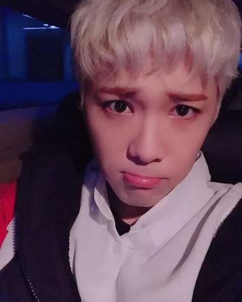 照片中的李弘基炫耀着大眼睛但怄气地把嘴巴嘟着引人瞩目。