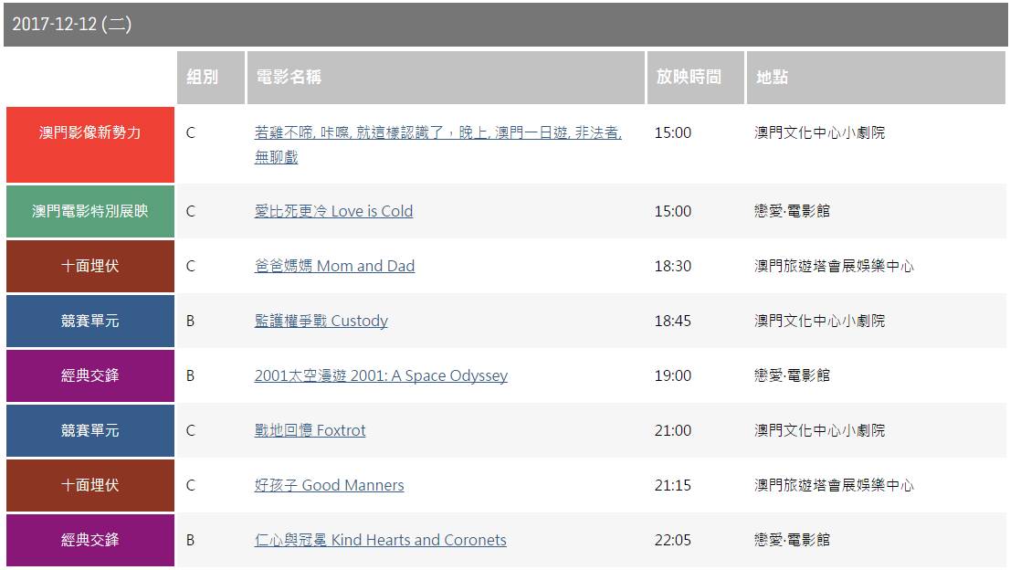 今年影展的多部電影于澳門文化中心、澳門旅遊塔會展娛樂中心及戀愛電影館播映,市民及旅客可于11月8日起透過澳門售票網 www.macauticket.com 購買電影門票,于影展期間亦可于各電影播放場地現場購票。