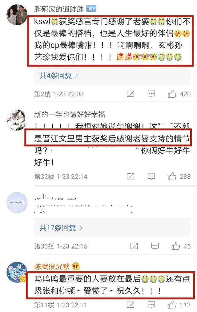 他们纷纷表示,这不就是晋江言情小说里男主获奖后感谢老婆支持的情节嘛,他们不仅是最棒的搭档,未来,也会是人生最好的伴侣。