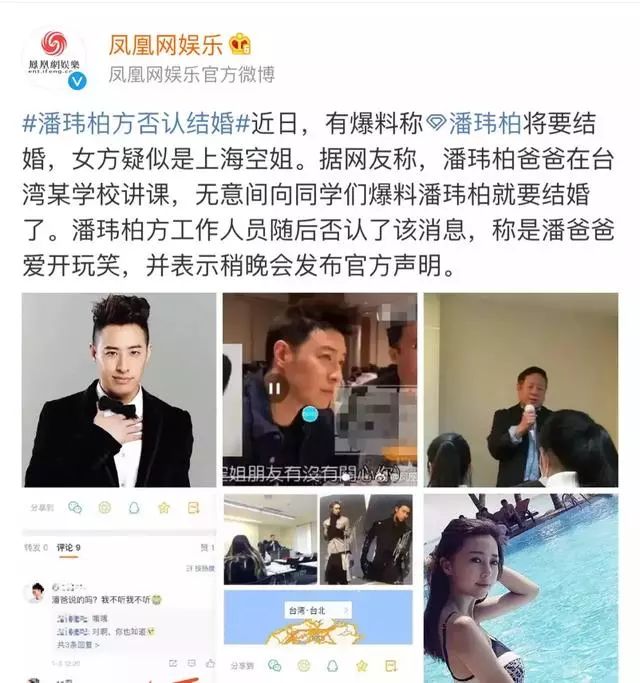 随后,潘玮柏方否认了潘玮柏要结婚的消息,并称是潘爸爸爱开玩笑,稍后他们会发布官方声明。很多粉丝本来得知偶像可能结婚的消息,都非常开心并送上了祝福。但后来知道这个消息并不属实之后,又非常的失望。