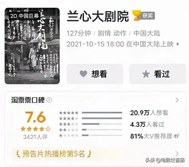 按理说这些情节应该很“博人眼球”,可《兰心大剧院》自从10月15日上映以来票房刚刚过千万。