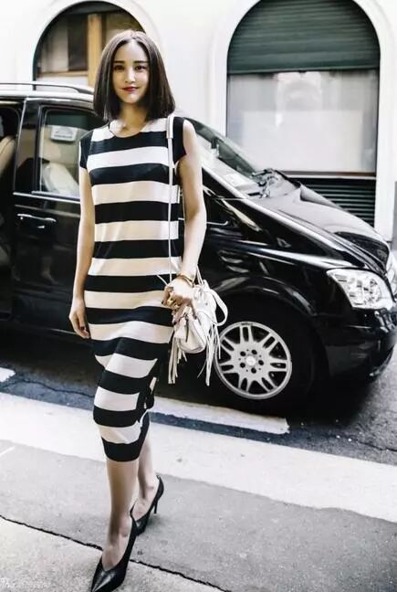 条纹的服饰近些年十分流行,条纹有着很好的修饰身材的效果。无袖的设计也十分用心,能够很好的展现修长的双臂!