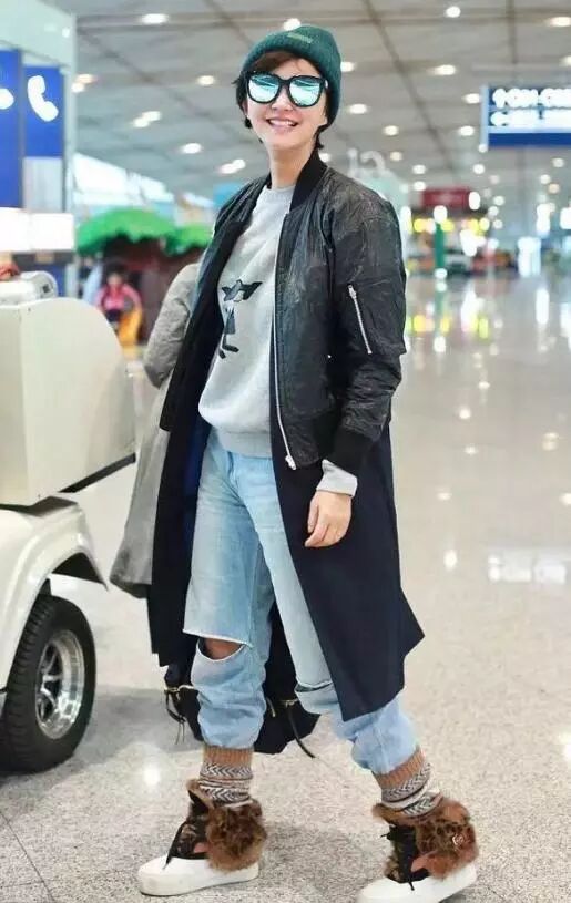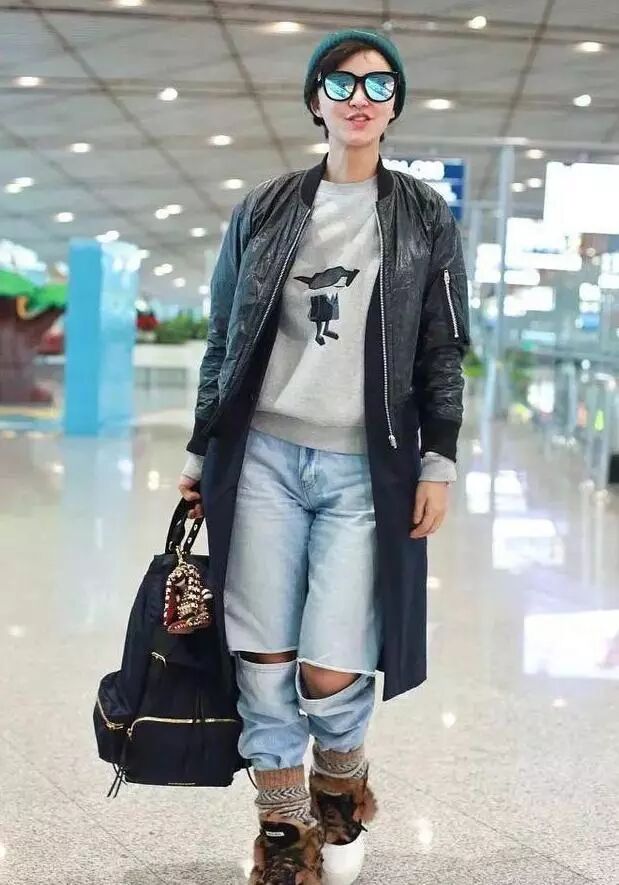 可这下身真不知是个什么鬼,为保暖牛仔裤塞进袜子里就算了,那为啥还要露膝盖,膝盖就不怕冷不成!