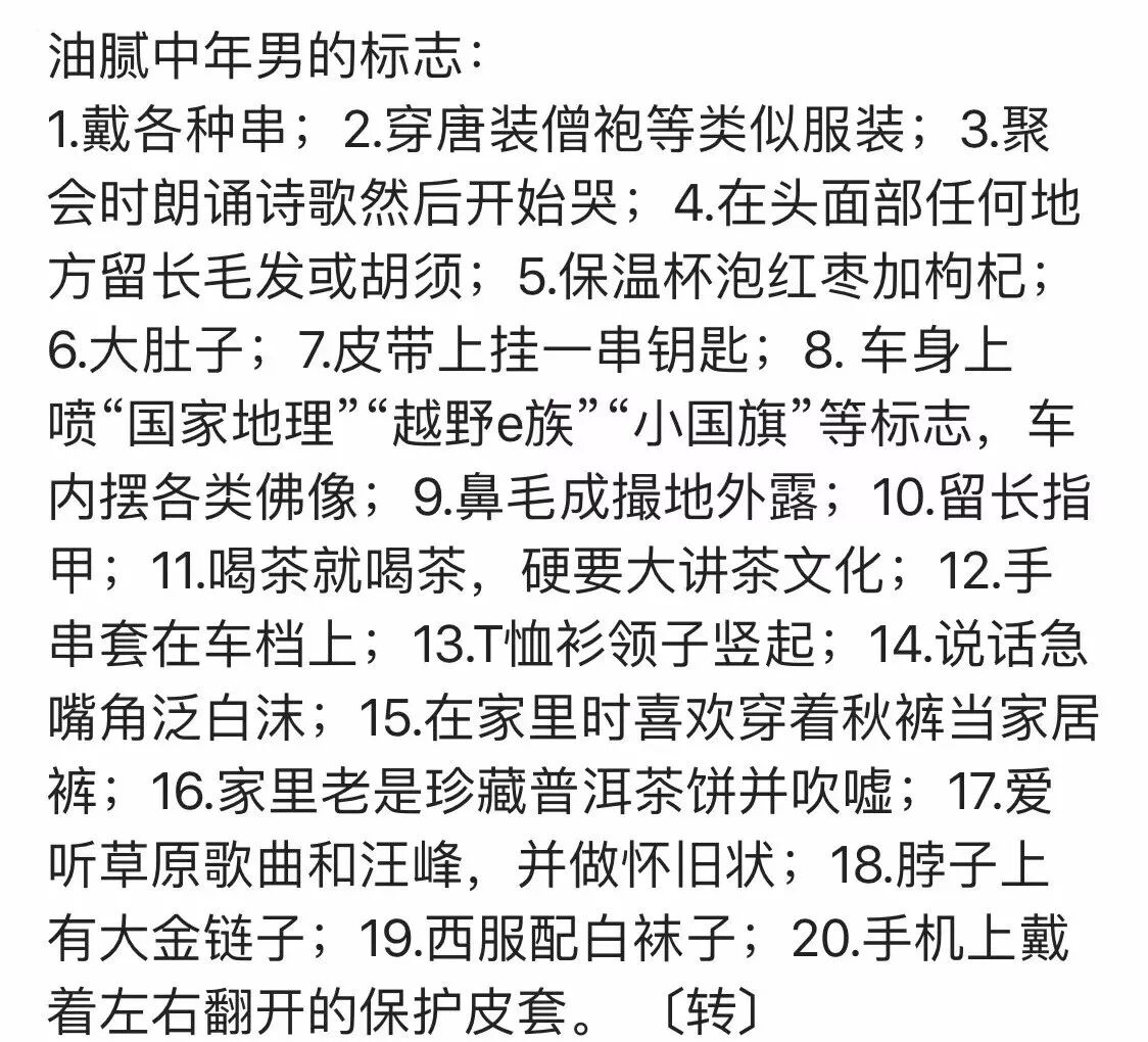 前几天看到冯唐写的文章,关于人到中年的状态,告诫所有迈入中年的男性,一定不要“油腻”,不要带“各种串”...