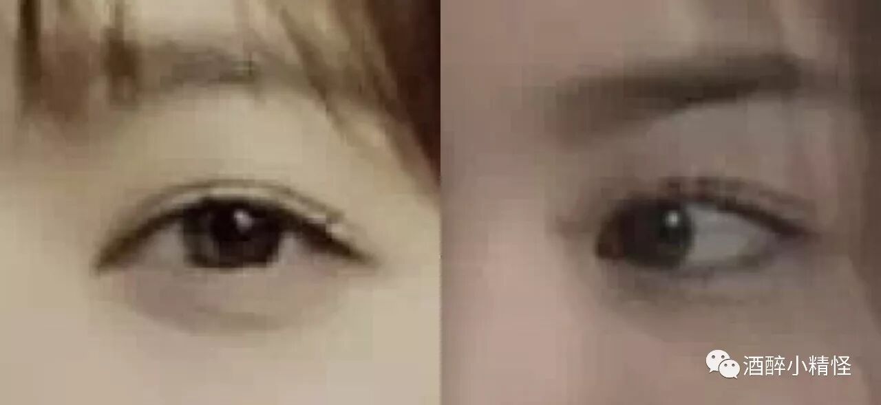 而现在的双眼皮头尾的形态,都完全随着眼睛向上向下的弧度起伏。眼角的双眼皮呈扇形折叠重合,而眼尾的双眼皮落脚处虽然和眼睛的起伏形态一致,但又微微的平行于眼睛。 因此即使化了妆,双眼皮的形态依旧是明显的。