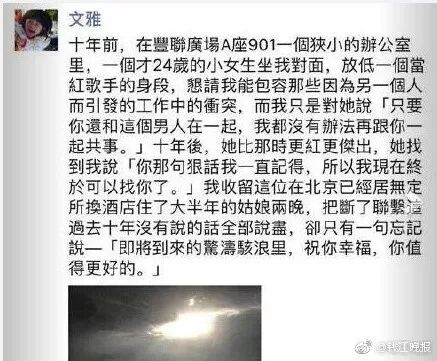那么究竟尚雯婕和聂涛之间有什么料,这个只能等文雅的爆料了。