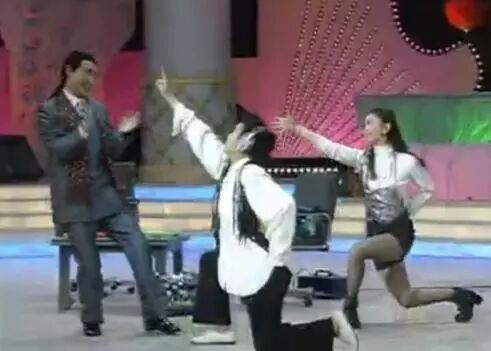 而歌舞类节目今日看来十分“彩蛋”。很多人知道哈林上春晚是和李敏镐合唱《情非得已》,其实早在92年,哈林老师就在春晚独唱过一曲《让我一次爱个够》: