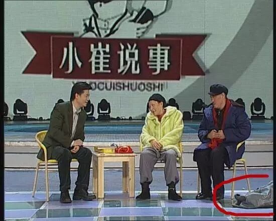 小品中有个重要道具,就是图中的旅行包。白云大妈送给小崔的《月子》,二人转手绢,都要从这个包里拿出来。可直播时,赵本山和宋丹丹都忘了把这个包带上场。