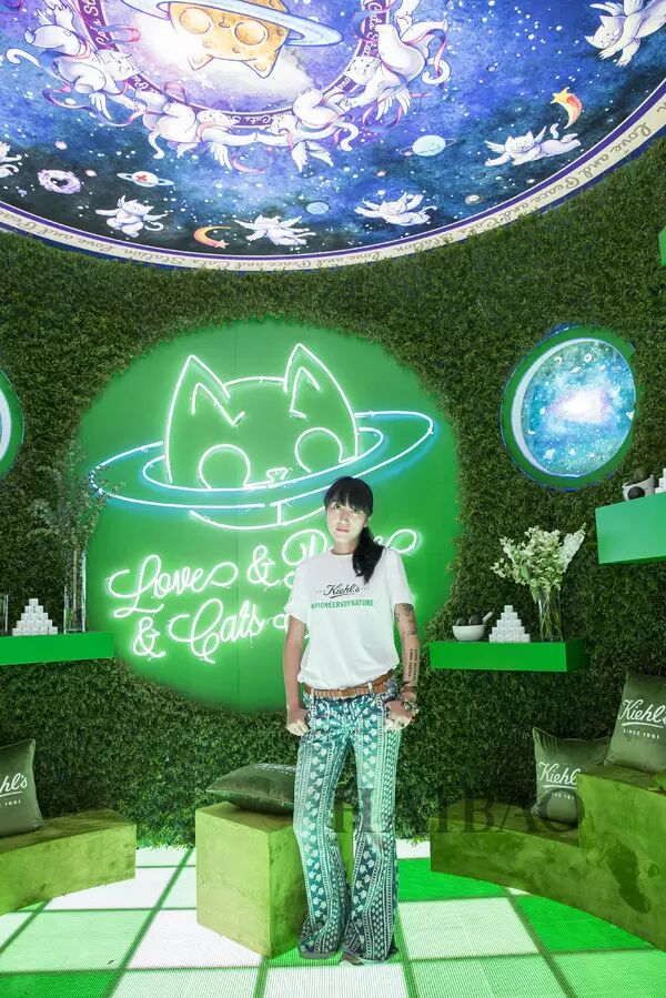 Love & Peace & Cats Station是官纯所创作的空间。空间以植物墙、薄荷的芬芳、以及她心爱的猫为灵感,还原了官纯的家即她的“猫星人宇宙”。空间无不表达了她所追求的人与自然的和谐共处,淋漓尽致地展现了她对艺术对生活充满爱的先锋精神。