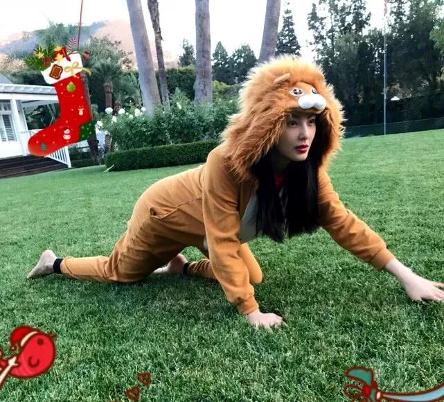 其中一张照片,她装扮成狮子模样,在一栋小洋房外的草坪爬动,如果这是她婚后居住的别墅,那大家明白为何要45万元月租金了吧?