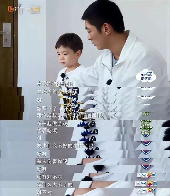 比如面对小孩子爱哭这件事。第二季的费曼,每次一哭吴镇宇就来情绪,吼他,不理他,把他丢在一边。相比之下,嗯哼哭的次数更多,但杜江从不对孩子发火,相反都是第一时间回应嗯哼,或者用一种正面鼓励孩子的方式,让嗯哼获得安全感。