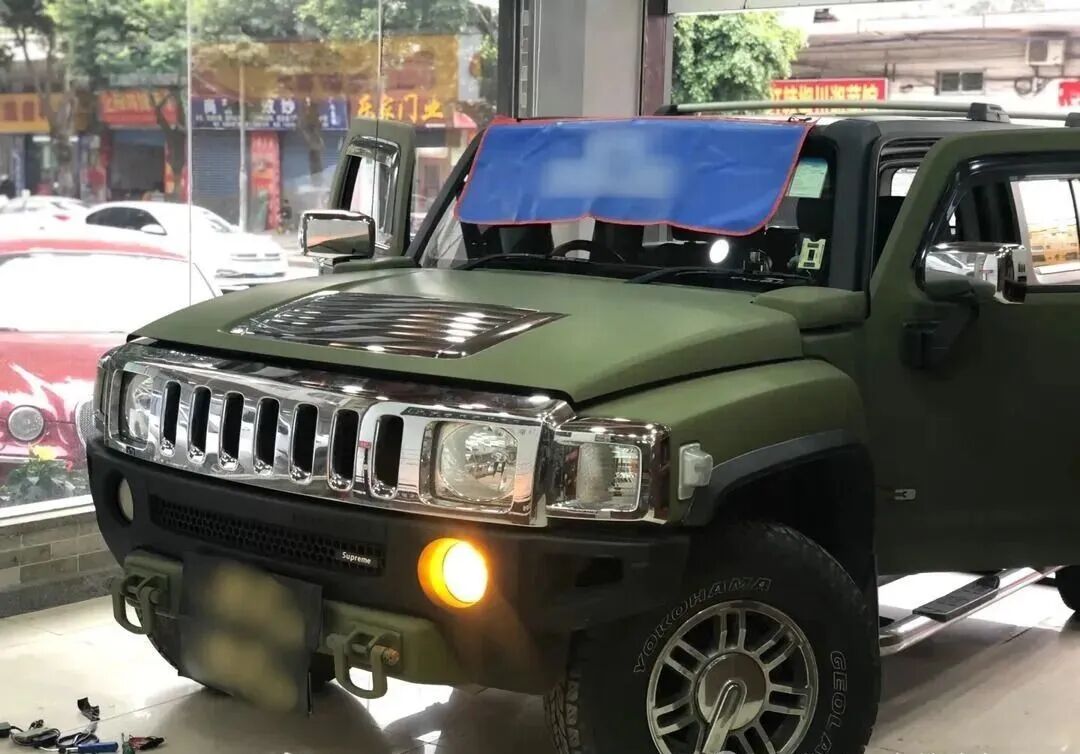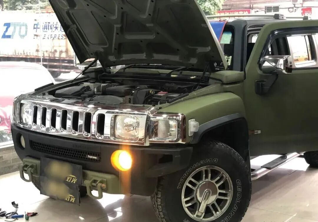 虽然这辆H3车龄不小了 , 但陈小春保养得相当用心。 LED大灯升级了 , 保险杠重新喷漆了 , 该修的修该换的换。 一辆车只要保养得当 , 开个二十年没问题。