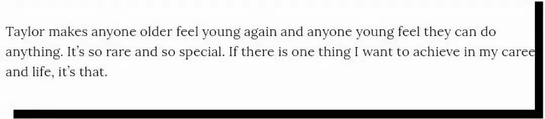 如萌德所说:泰勒让每个人觉得年轻,觉得没有什么不可以。她自身就是这样一个神奇的人。