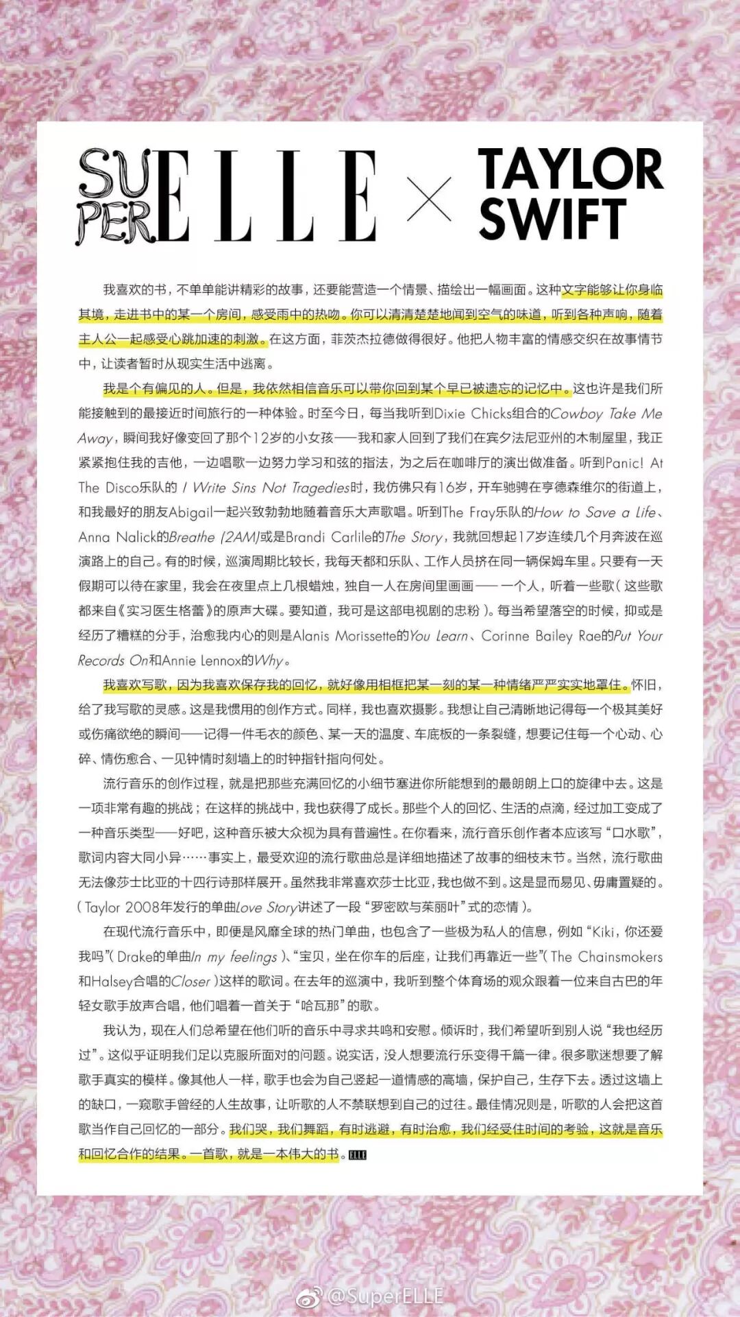 登上SuperELLE春季刊封面的霉霉就曾对我们敞开心扉,分享了自己的创作世界。