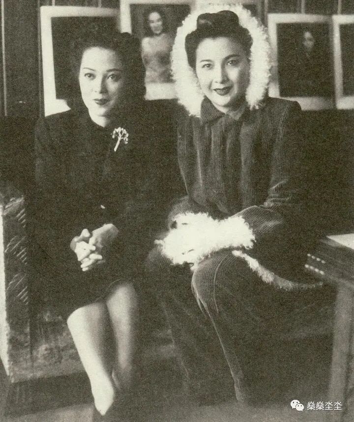 在上海拍摄《万世流芳》时与主演陈云裳的合影