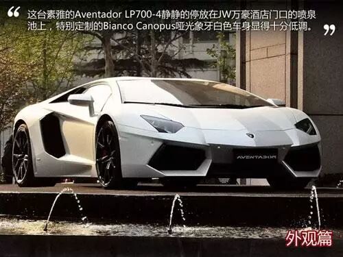 兰博基尼Aventador LP 700-4 Coupe成龙特别定制版,为一辆独一无二的亚光象牙白车身,主/副驾驶座椅头枕及外后视镜里侧的车门装饰板上皆手工缝制了“龙”字徽标。拍卖所得用于公益事业。