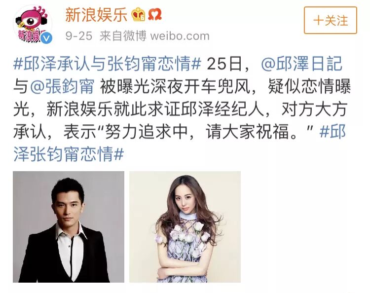 9月25日,媒体拍到张钧甯与邱泽同车约会,这本来也没什么,但男方第一时间回应,“努力追求中,请大家给祝福”。