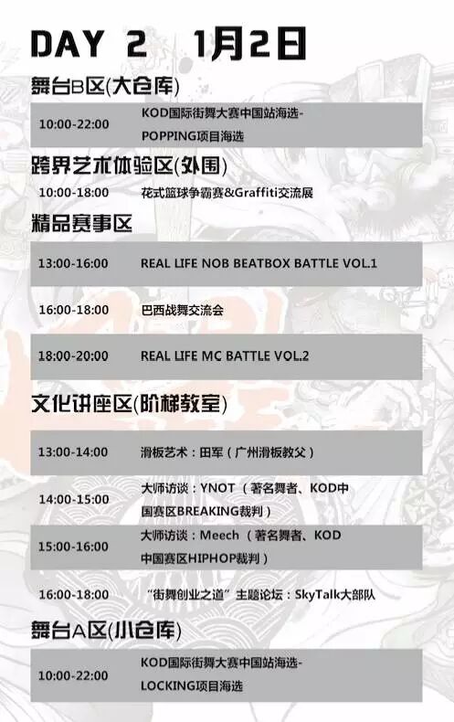 REALLIFE嘻哈潮流文化节成立于2012年,秉承着“传承、创新、分享”的口号,以推广HIPHOP潮流文化为主导,内容涵盖了HIPHOP文化四大元素(DJ、说唱、街舞、涂鸦),融合了当今最受年轻人喜爱的时尚文化项目,包含潮流文化讲座、极限运动交流、跨界艺术展览、潮流品牌市集等内容。今年更融入了更多的中国元素,让HIPHOP文化与传统文化、现代艺术碰撞融合,更富有内涵和惊喜。今年的文化节必将成为一场汇聚传统、时尚、潮流于一身的HIPHOP潮流盛会,2016年1月1日-3日,更多精彩、惊喜等你来发掘!