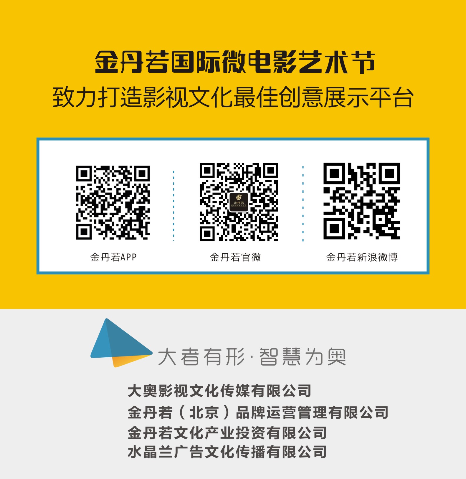 金丹若国际微电影艺术节致力于为广大影视爱好者提供最佳的创意展示平台。只要你有才华,只要你有梦想,金丹若就是你最好的自我展示平台。金丹若国际微电影艺术节长期招募演员、主持人、编剧、导演、音乐创作者。金丹若的舞台已经搭好,后期制作包装团队全员就位,所有一切只为出身平凡却怀揣影视梦想的你。报名咨询:029-88815001.