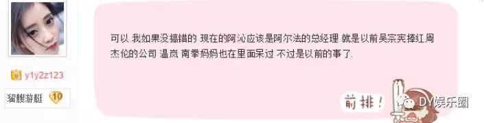 阿沁的出现引得水友兴奋的说:我如果没搞错的 现在的阿沁应该是阿尔法的总经理 就是以前吴宗宪捧红周杰伦的公司 温岚 南拳妈妈也在里面呆过!!!