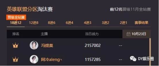 斗鱼首次年度盛典办的格外吸睛,数万名主播将与千万水友共同参与激烈角逐,冯提莫今日成功位列LOL分区第一,阿冷屈居第二。不知道是不是因为把心思放在录歌上,阿冷这边的战斗力低出一倍,看来是还没大招。