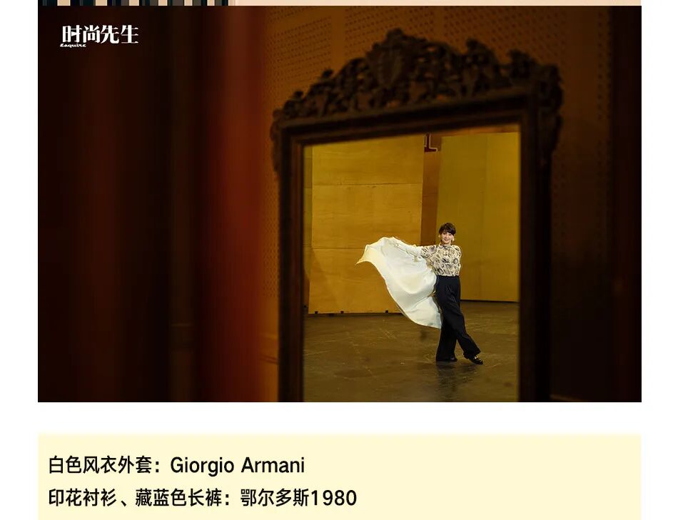 印花衬衫、藏蓝色长裤:鄂尔多斯1980