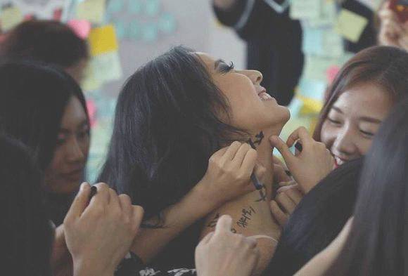 ▼让粉丝在自己身上签名,带着一身骄傲走上回归的直播现场
