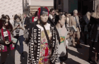 而关于春春最近的动态F君其实还停留在刚结束不久的米兰时装周,因为整个时装周最令F君印象最深刻的就是李宇春去看Gucci春夏大秀时的“中国娃娃”造型。胆子很大的照搬了秀场look搭配,总之就是很复古,很文艺,很Gucci▼