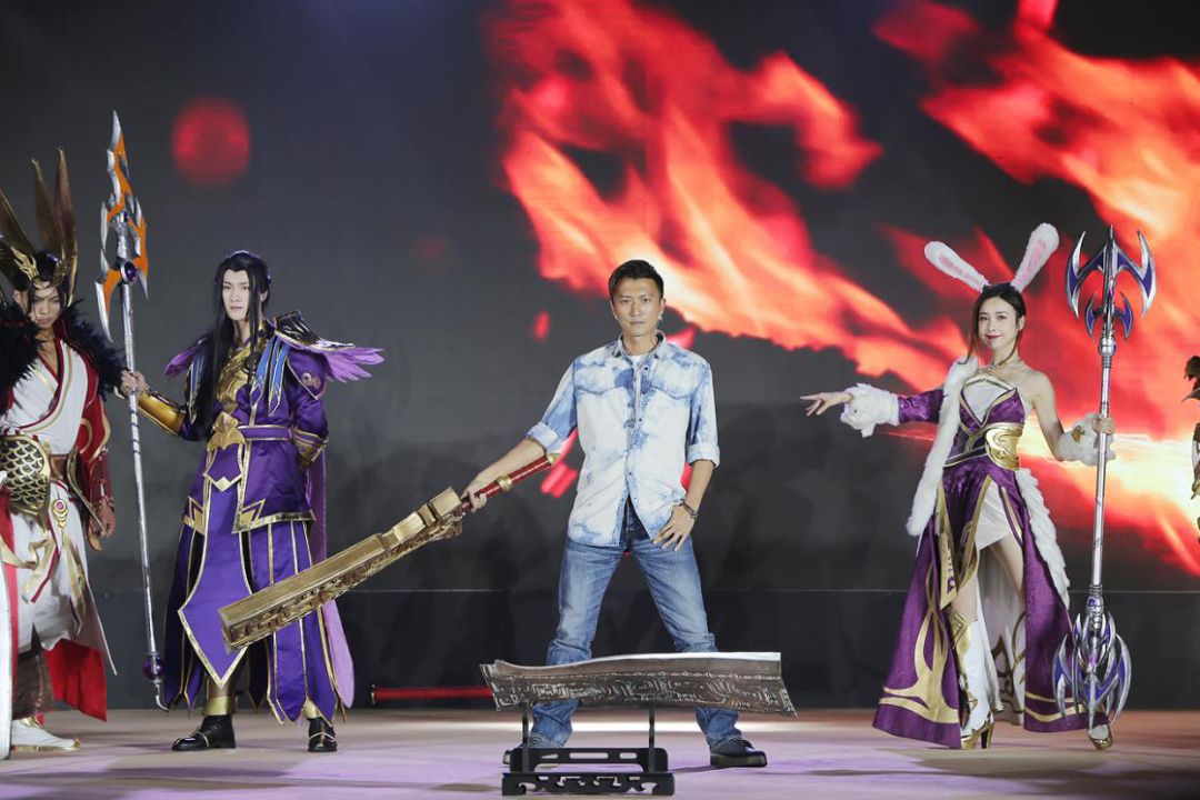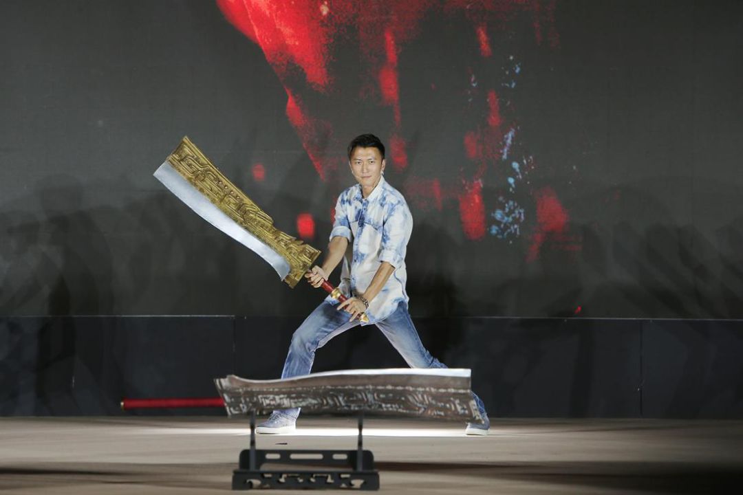 惊不惊喜、意不意外!一向以酷帅形象示人的谢霆锋,在发布会扛起了屠龙刀!